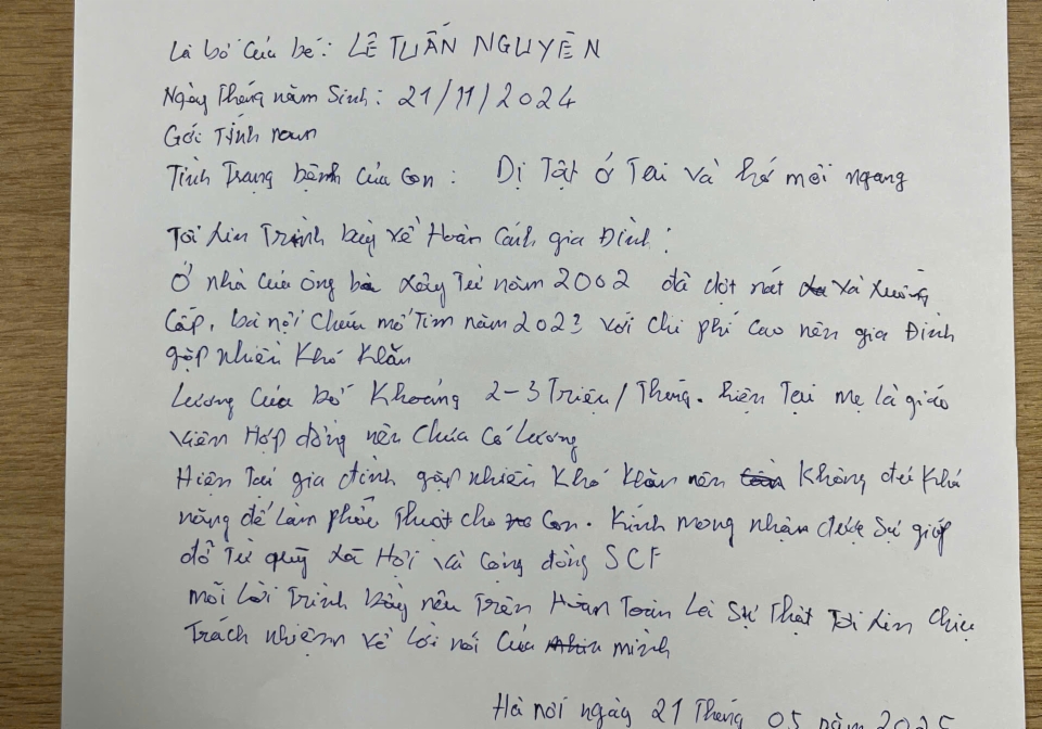 🙏 Để giúp bé Tuấn Nguyên có cơ hội được phẫu thuật sớm, cải thiện sức khỏe và phát triển bình thường như bao đứa trẻ khác, gia đình đang cần sự giúp đỡ của cộng đồng với số tiền là 3.837.000 đồng – một con số tuy không lớn với nhiều người, nhưng lại là cả một ước mơ với gia đình bé lúc này.
