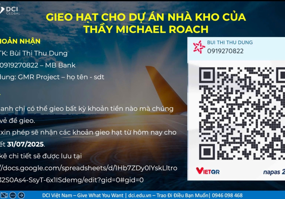 👉 Hưởng ứng lời kêu gọi từ thầy Michael Roach. CĐ Biến Ước Mơ Thành Hiện Thực kêu gọi MTQ cùng phát tâm gieo hạt nuôi 42 dự án của Thầy GMR 100.000.000đ