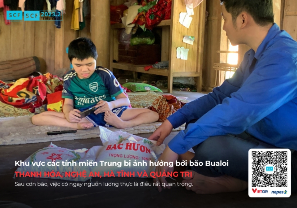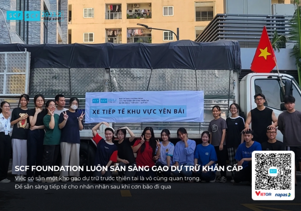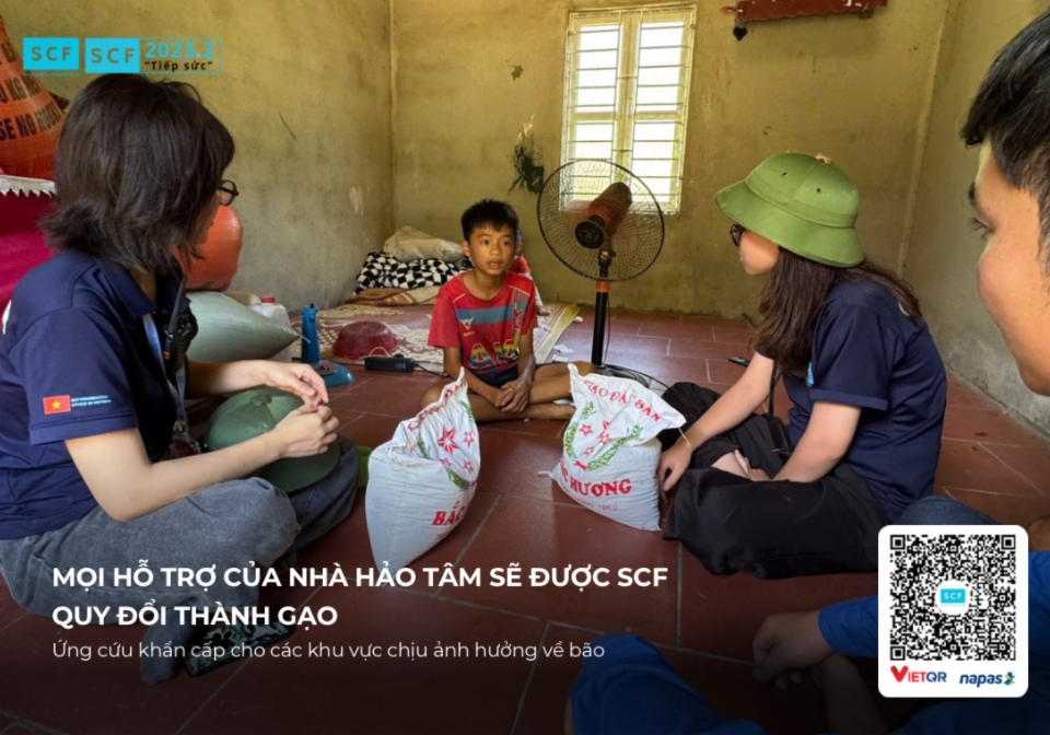 Với tinh thần "Tương thân tương ái", "Lá lành đùm lá rách", Quỹ Xã hội và Cộng đồng SCF đã phát động Dự án 2023.2 "Tiếp sức" để kịp thời hỗ trợ đồng bào vùng bão. Toàn bộ số tiền ủng hộ của bạn sẽ được Quỹ SCF quy đổi thành gạo và các nhu yếu phẩm khác. Đặc biệt, đội ngũ tình nguyện viên của Quỹ sẽ trực tiếp vận chuyển và trao tận tay từng bao gạo cho người dân tại các vùng chịu ảnh hưởng nặng nề nhất, đảm bảo sự hỗ trợ đến đúng người, đúng lúc.