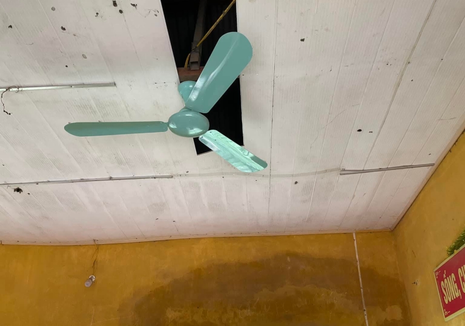 🏚 Mái tôn cũ nát - mối nguy rình rập: Mái tôn không chống nóng đã là một cực hình vào mùa hè, nhưng điều đáng sợ hơn là trần nhựa bên trong đã giòn gãy, bung ra và có thể rơi xuống bất cứ lúc nào ngay trên đầu những học trò nhỏ đang miệt mài học tập.